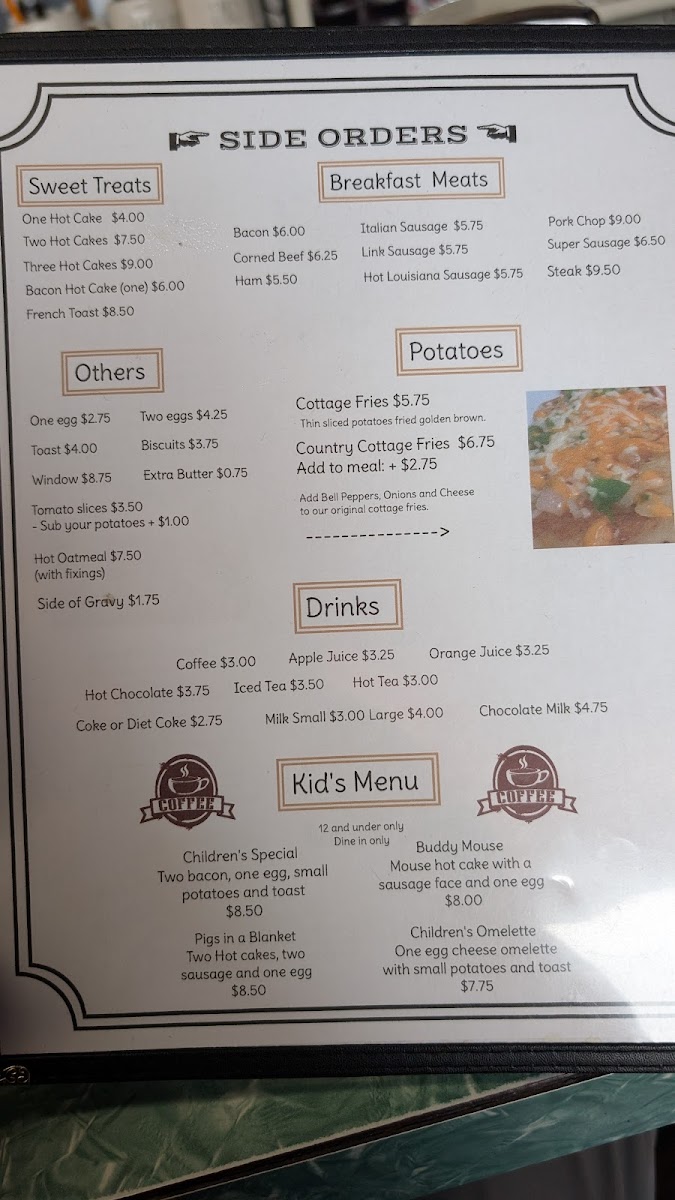 The menu at Uncle Bud's Kitchen showcases timeless breakfast classics with a twist. Dive into their side orders featuring irresistible breakfast meats like the flavorful Italian Sausage ($4.75) and the hearty Pork Chop ($5.75). For a taste of something truly comforting, the Corned Beef Hash Benedict is a standout, showcasing the kitchen's mastery of traditional fare, making it a must-try tip suggested by many frequent visitors.
