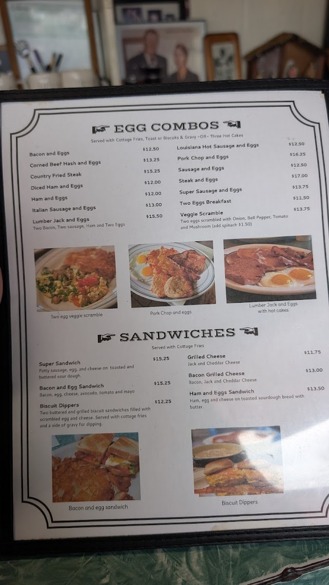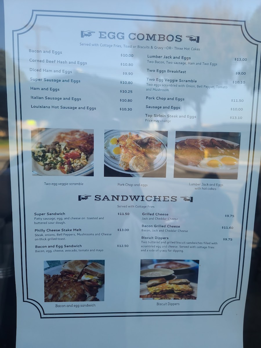 For those with a sweeter palette, the Pigs In A Blanket, comprising two fluffy hotcakes with a side of sausage and an egg, is adored by kids and adults alike, priced at just $6.75. And let’s not forget the classic Lumberjack plate, an ample serving bursting with flavor that will keep you energized throughout the day.