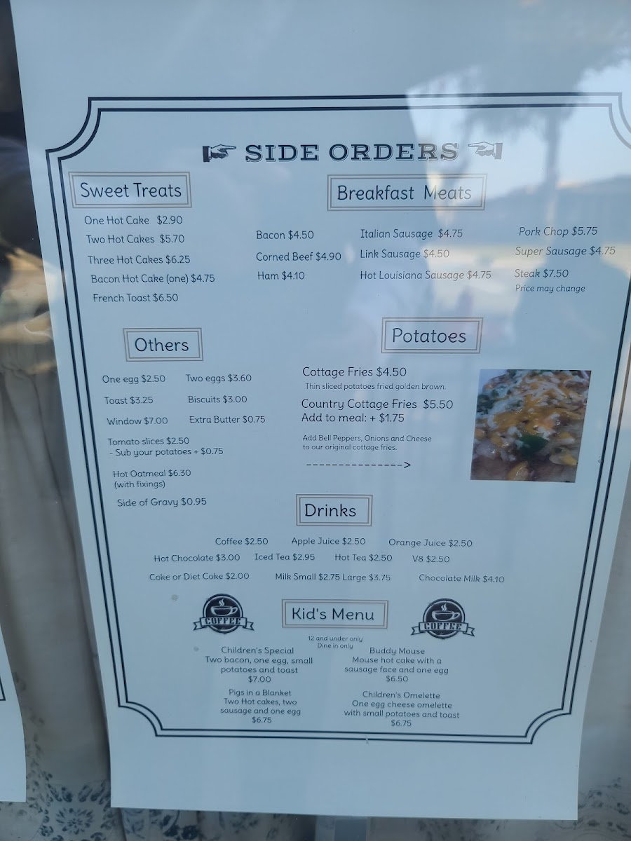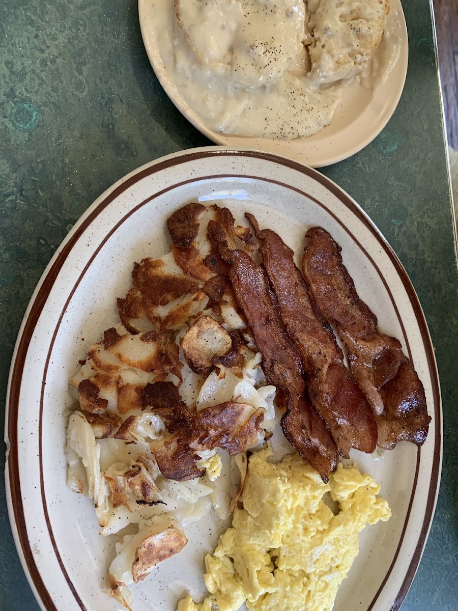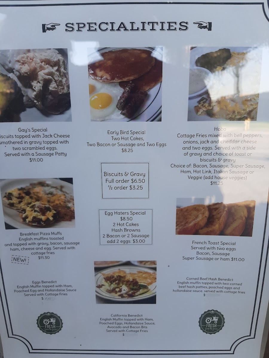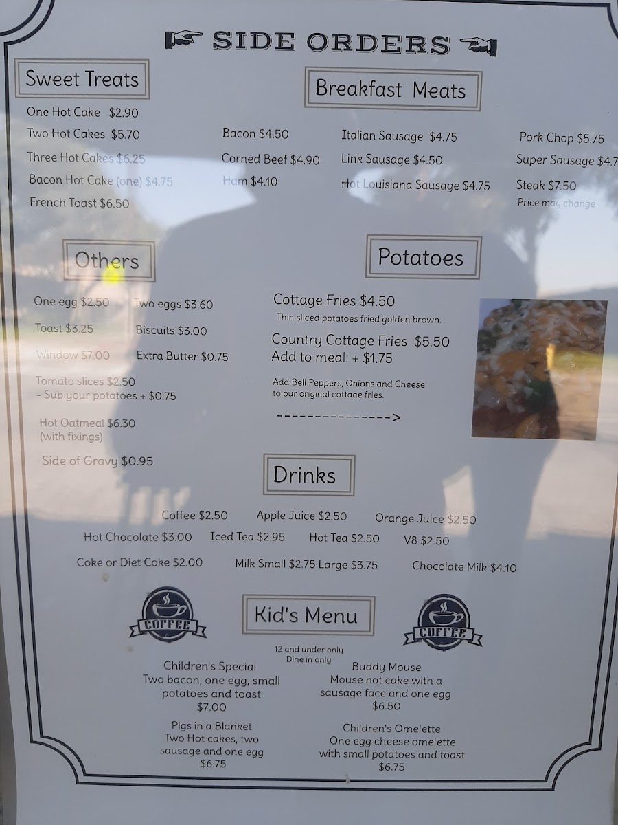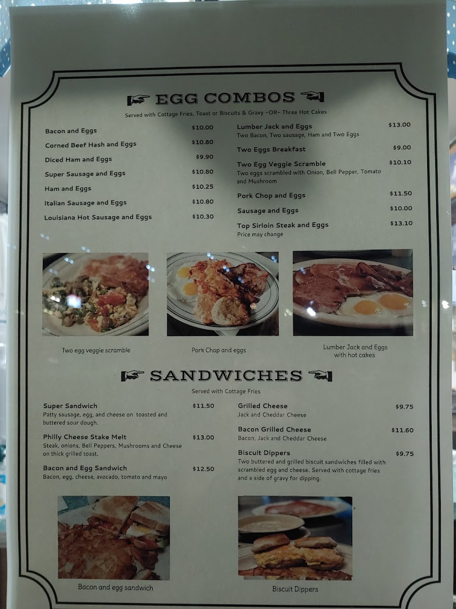 Upon entering, you're embraced by the smell of sizzling breakfast meats and freshly brewed coffee. The decor is quaint and nostalgic, instantly transporting you to a simpler time. The intimate seating, accommodating around 20 people, fosters a sense of community as regulars chat and share laughter, making every visit feel like a gathering of friends.